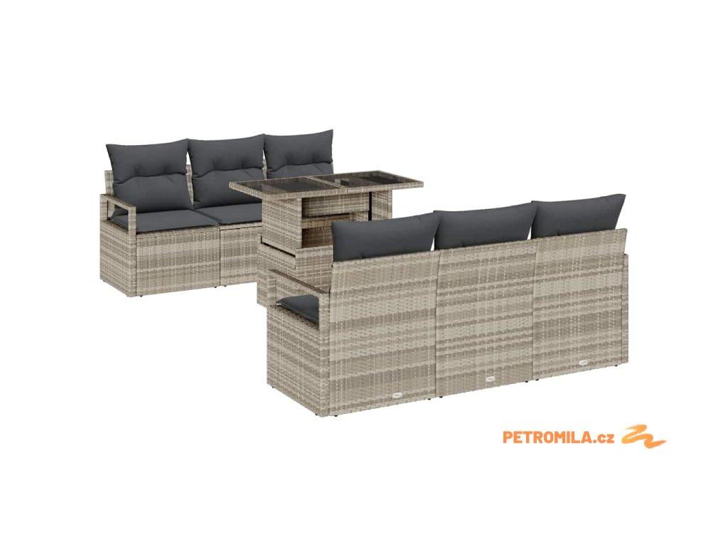 Sada zahradních pohovek s úložištěm 7 pcs Světle šedá polyratan