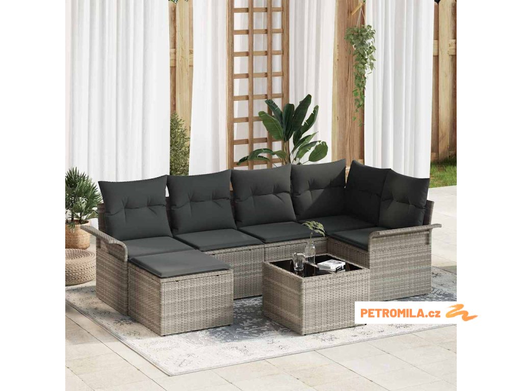 Sada zahradních pohovek s úložištěm 7 pcs Světle šedá polyratan