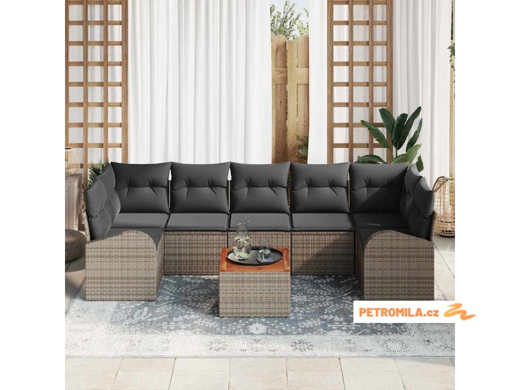Sada zahradních pohovek s úložištěm 8 pcs Šedá polyratan