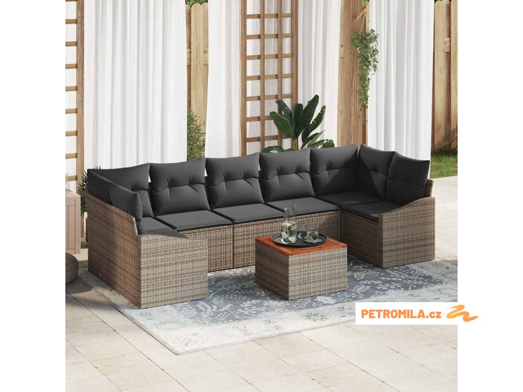 Sada zahradních pohovek s úložištěm 8 pcs Šedá polyratan