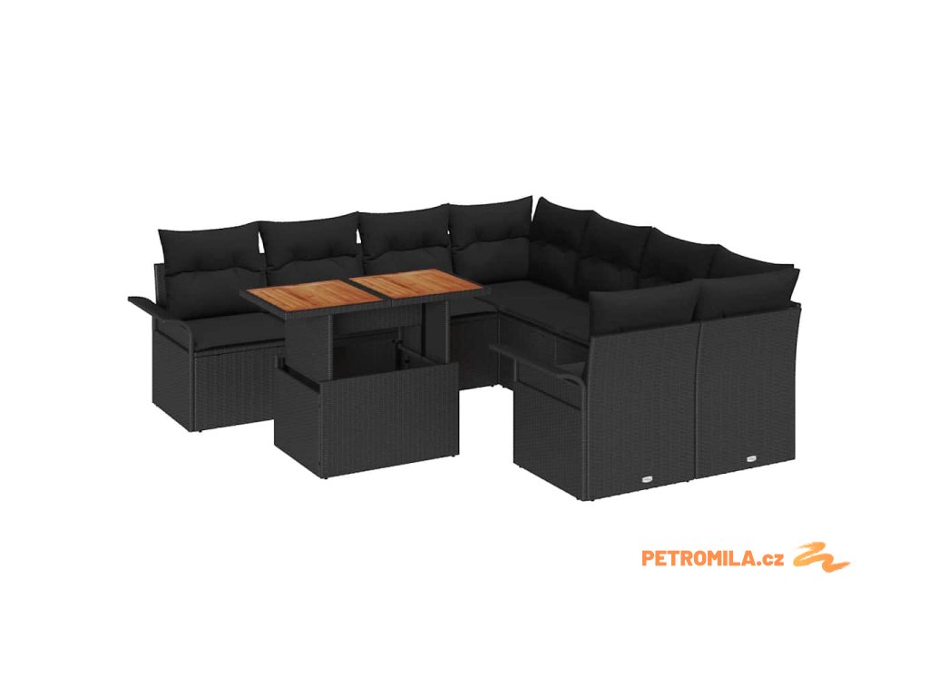 Sada zahradních pohovek s úložištěm 9 pcs Černá Poly ratan