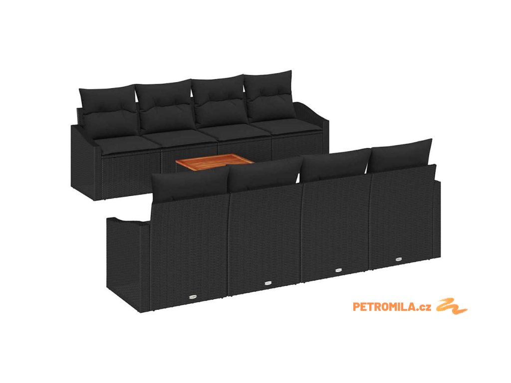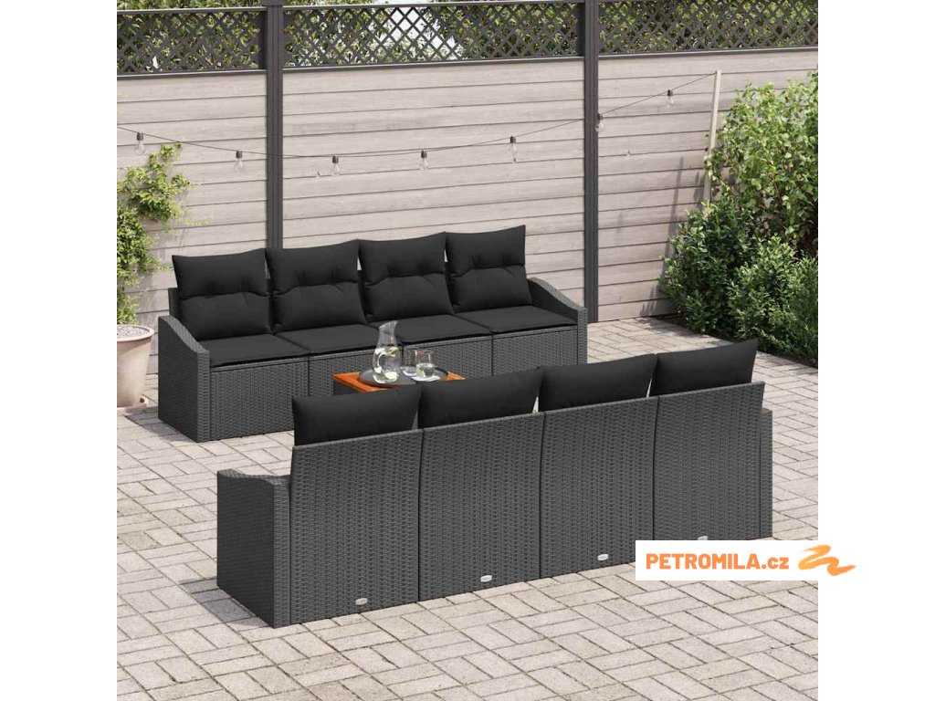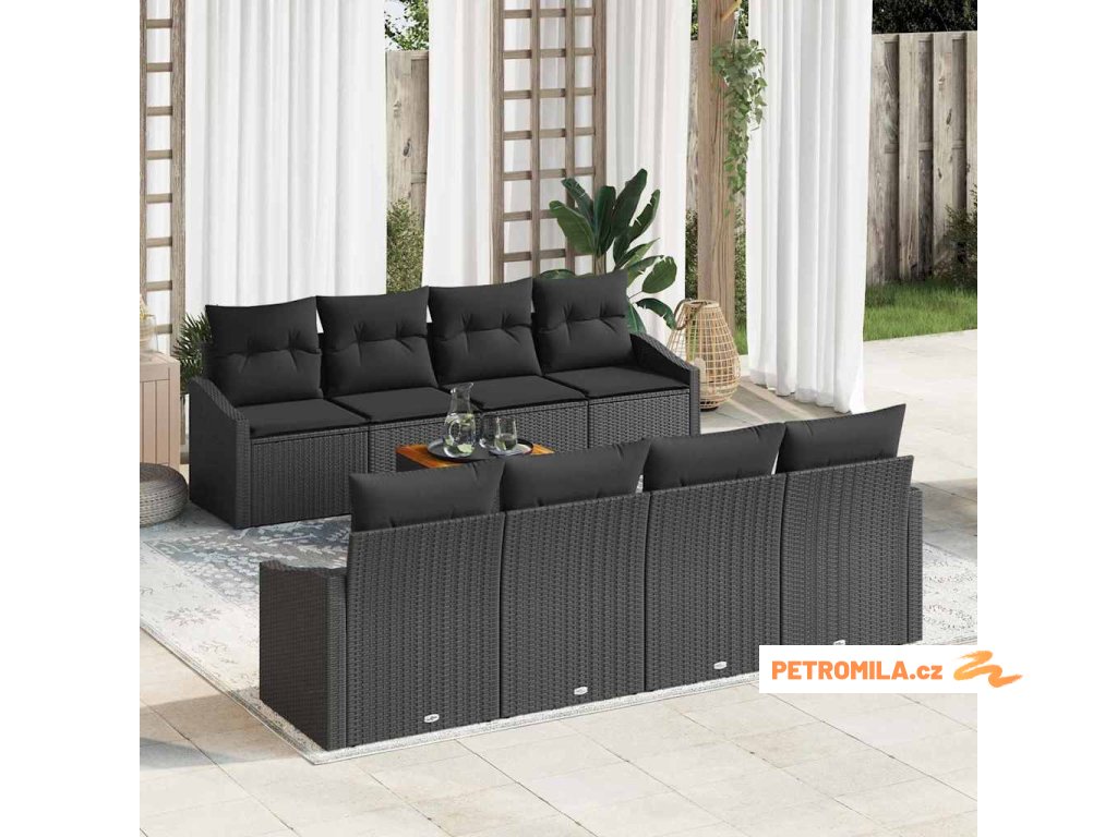 Sada zahradních pohovek s úložištěm 9 pcs Černá polyratan