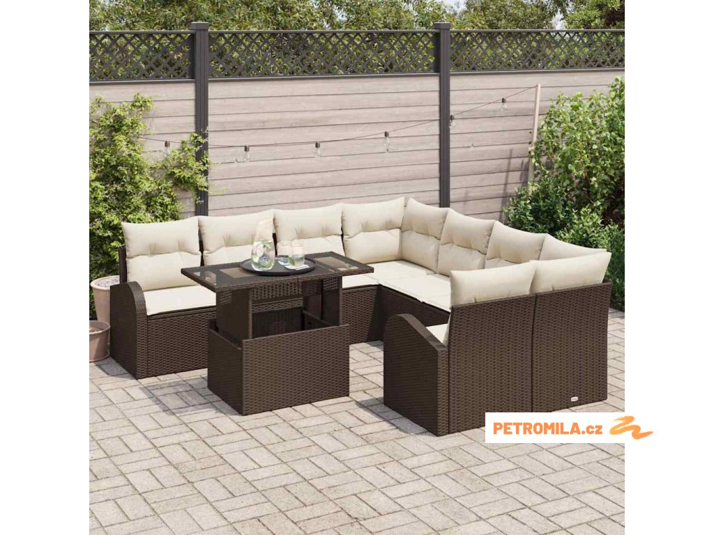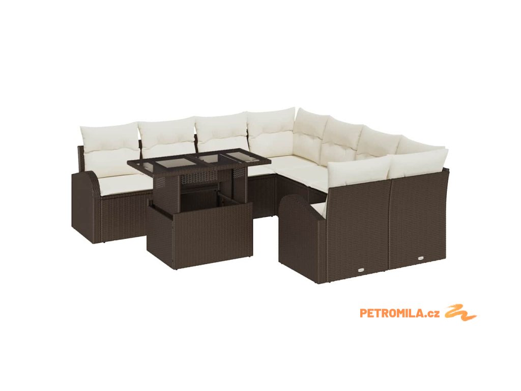 Sada zahradních pohovek s úložištěm 9 pcs Hnědá polyratan