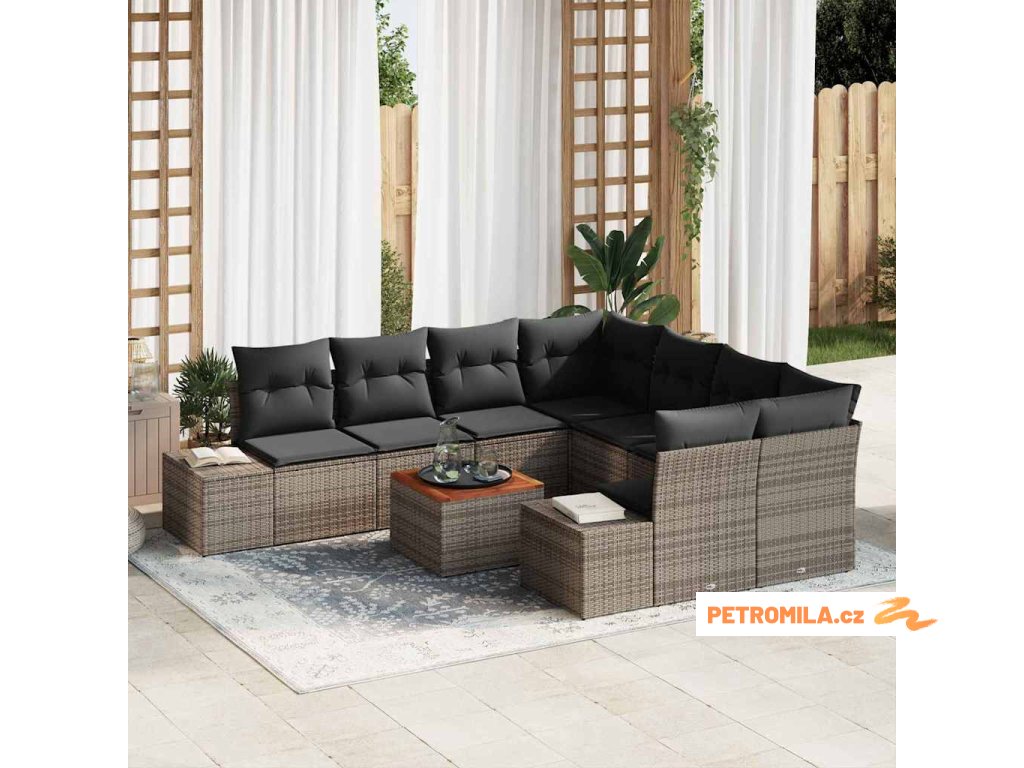 Sada zahradních pohovek s úložištěm 9 pcs Šedá polyratan