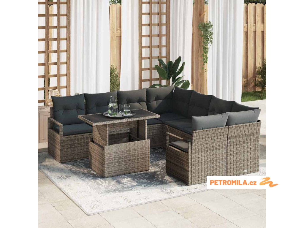 Sada zahradních pohovek s úložištěm 9 pcs Šedá polyratan