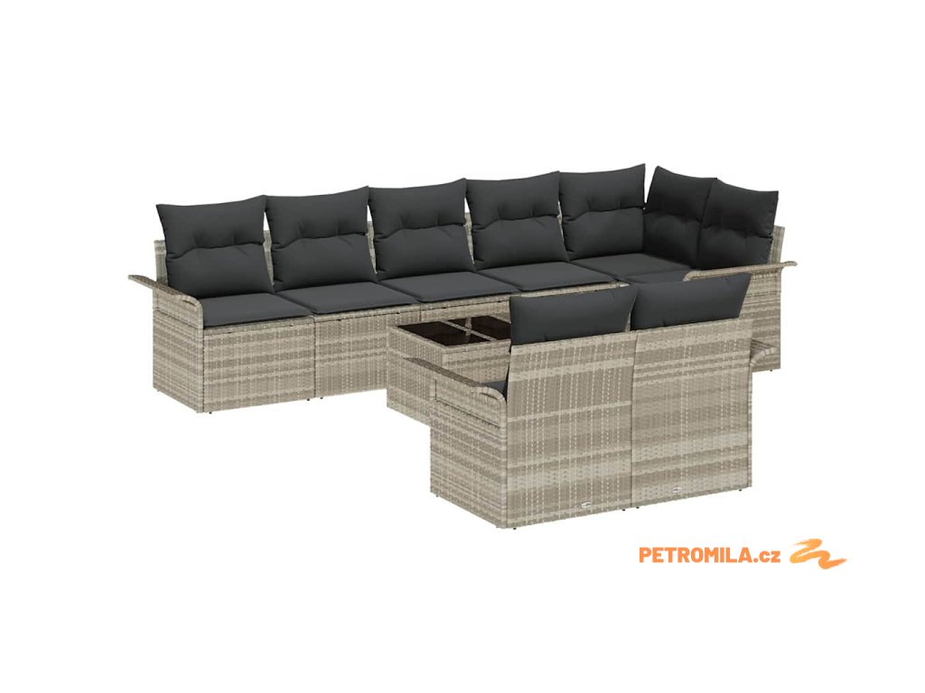Sada zahradních pohovek s úložištěm 9 pcs Světle šedá polyratan