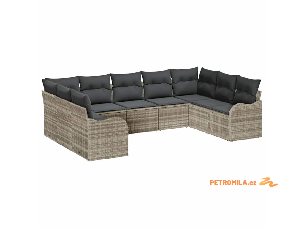 Sada zahradních pohovek s úložištěm 9 pcs Světle šedá polyratan