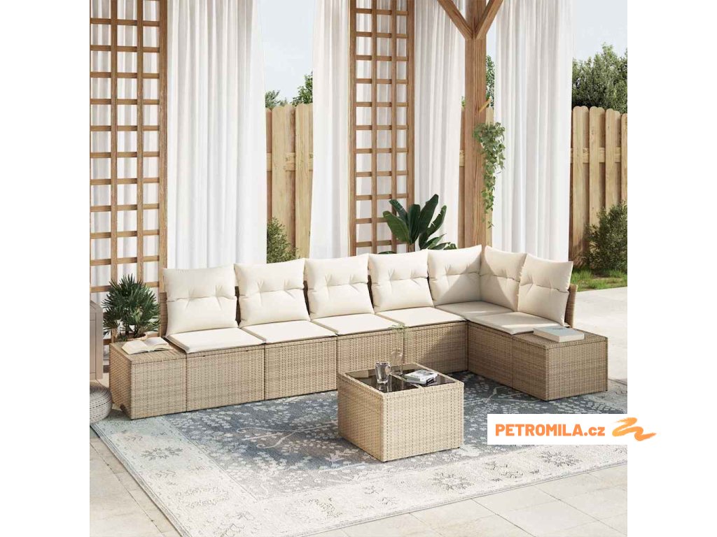 Sada zahradních pohovek s úložištěm Béžová a krémová polyratan