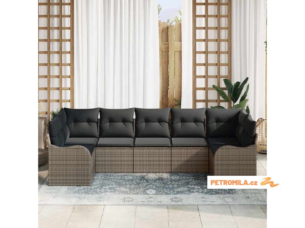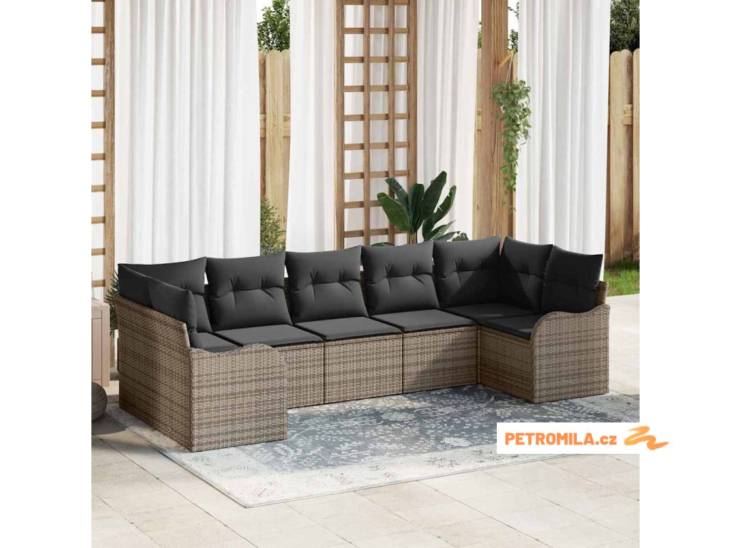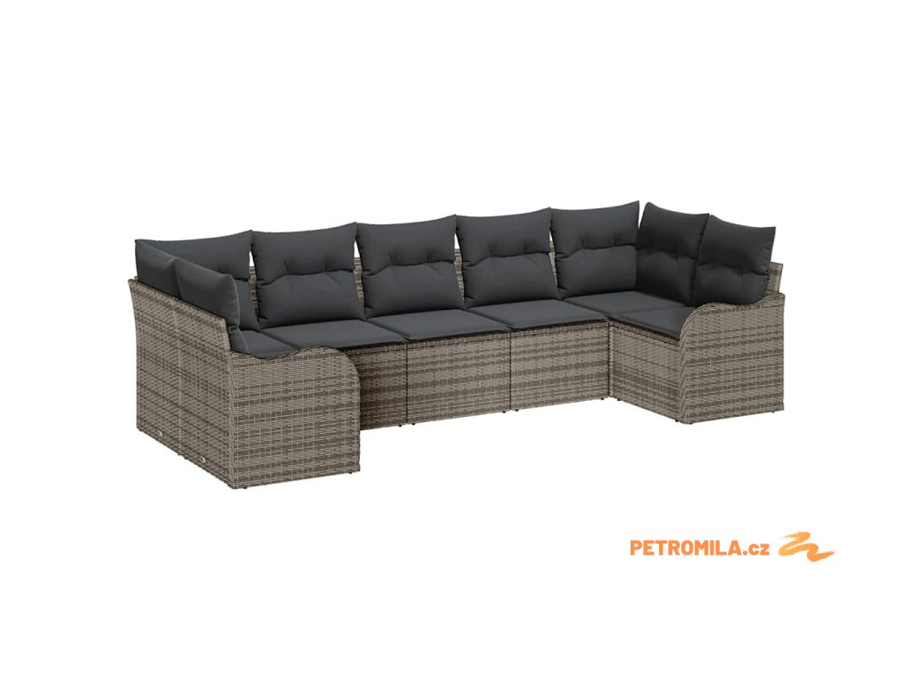 Sada zahradních pohovek s polštářem 8 pcs Šedá Poly ratan