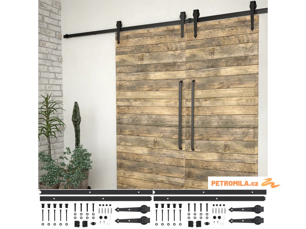 Balení obsahuje 4 pojezdové kolejnice, 4 kolečka, 4 dveřní dorazy, 2 pozemní vodicí lišty, 4 zarážky proti vyskočení, 10 upevňovacích svorek a ostatní nezbytné příslušenství. Poznámka: Dveře nejsou součástí balení.