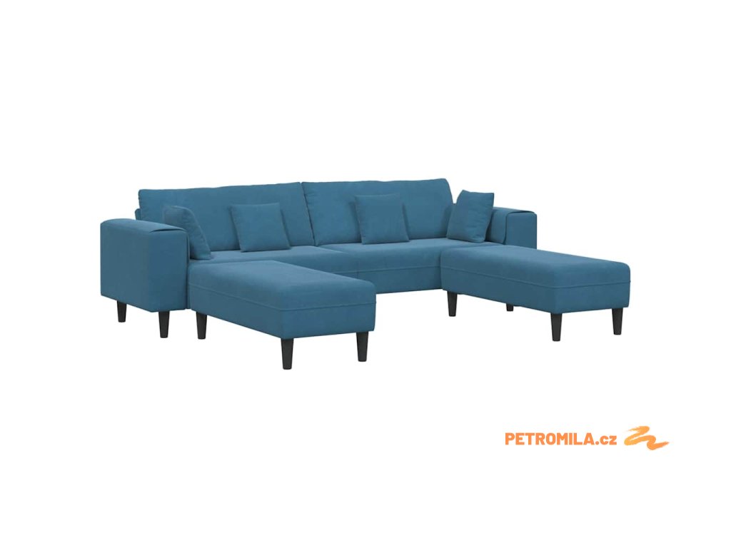 Sametová pohovka s polštářem 3 pcs Modrá 208 cm samet