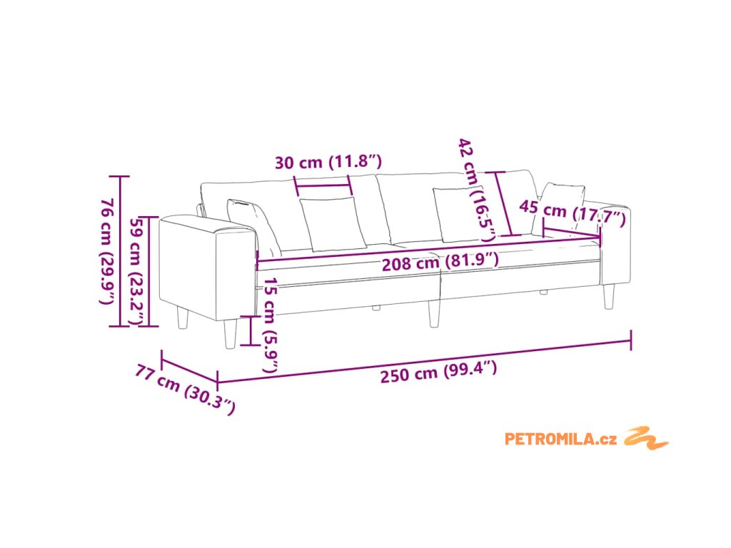 - Celkové rozměry: 250 x 77 x 76 cm (D x Š x V)