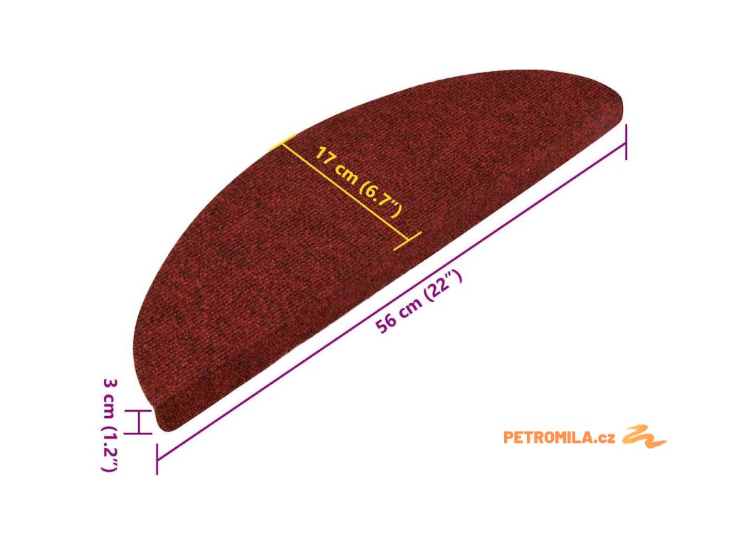 Samolepicí nášlapy na schody 15 ks 56x17x3 cm červené