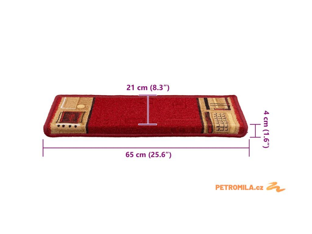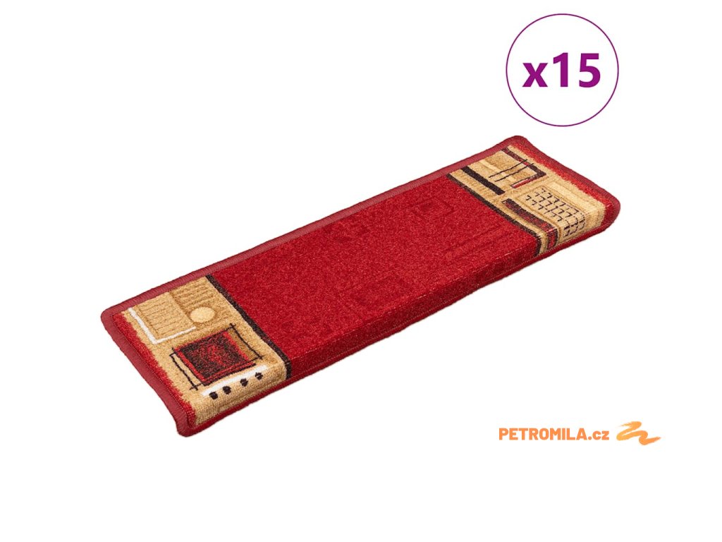 Samolepící nášlapy na schody 15 ks 65x21x4 cm červené
