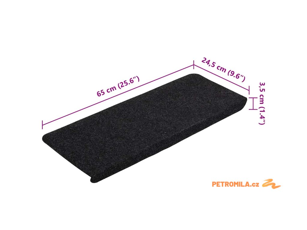Samolepicí nášlapy na schody 15 ks 65x24,5x3,5 cm černé