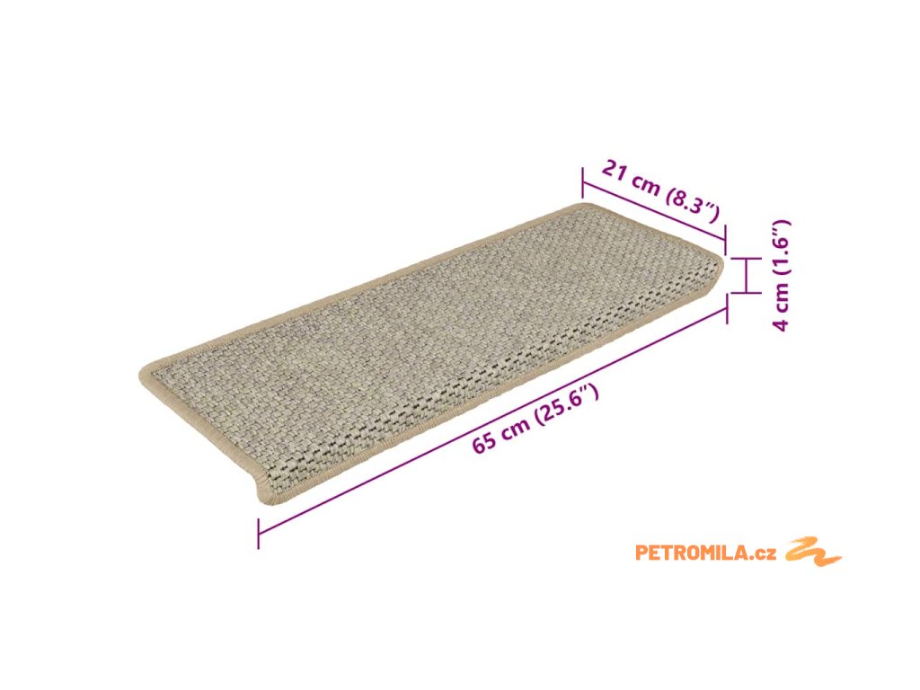 Nášlapy jsou vyrobeny ze silné textilie se sisalovým vzhledem, takže tlumí zvuk a brání uklouznutí a přitom jsou zároveň teplé a pohodlné. Dají se také vyprat. Nášlapy mají záhyb, díky kterému chrání schody jak seshora, tak i z jejich přední strany. Lepící pásky na zadní straně nášlapů vám umožní nášlapy na schody připevnit rychle a jednoduše.