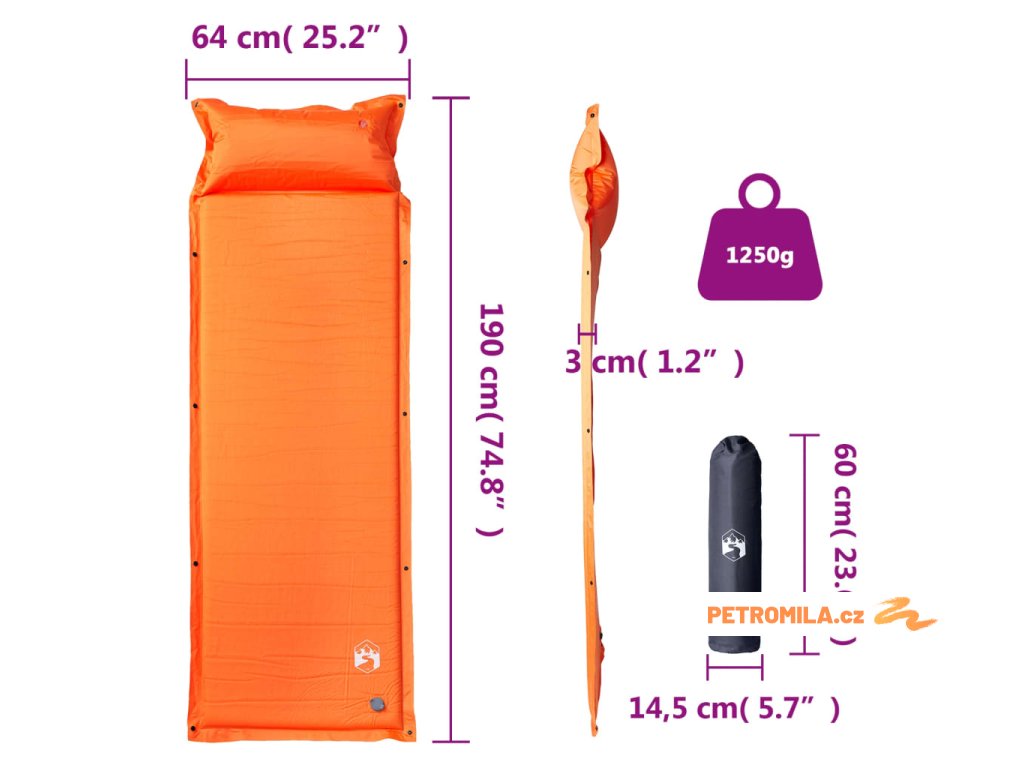 Samonafukovací kempingová matrace s polštářem 1 osoba oranžová