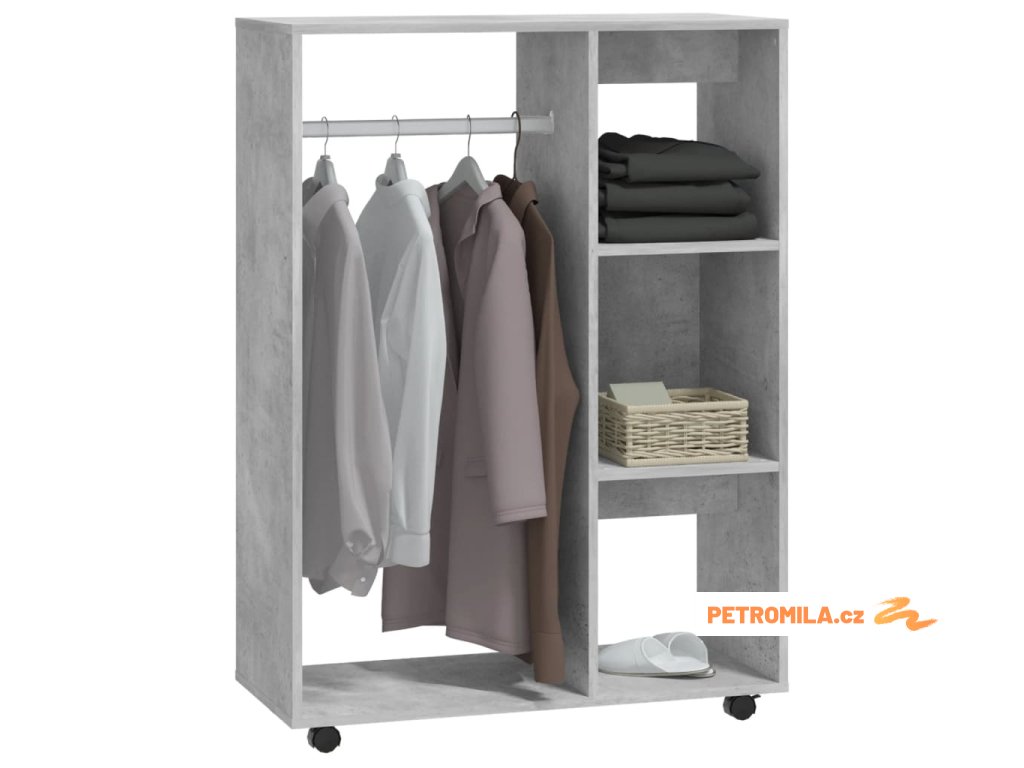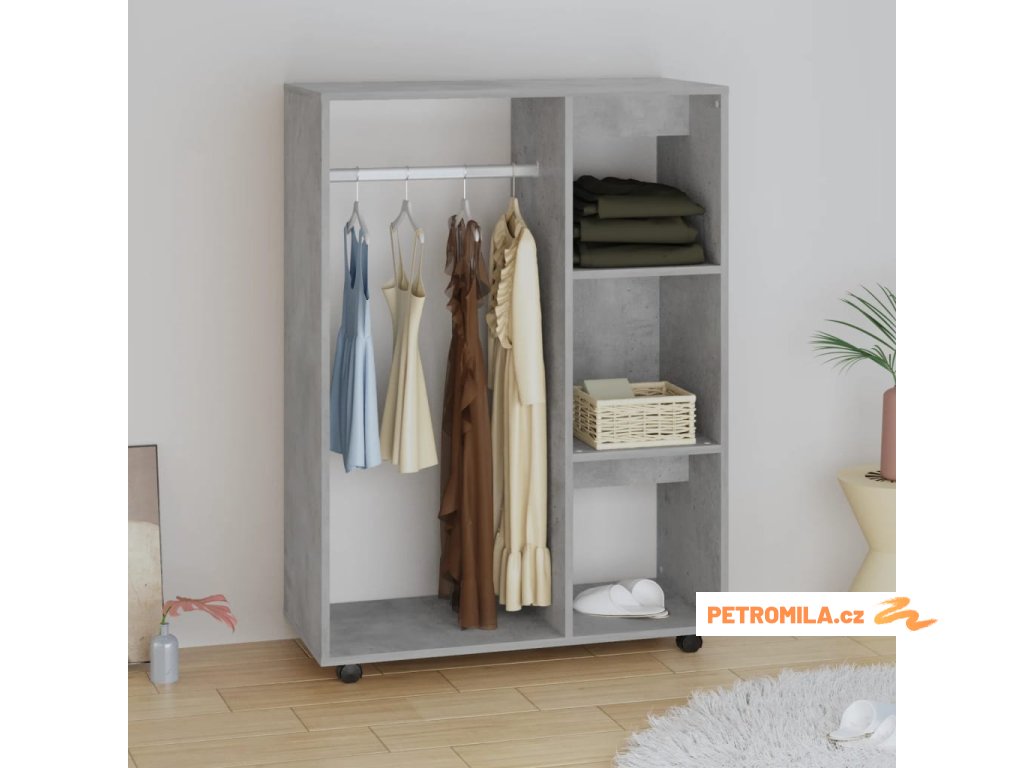 Tato úložná skříň je vyrobena z kompozitního dřeva, je proto odolná a robustní a skvěle vám poslouží pro uložení a organizaci vašeho oblečení. Pomocí koleček ve spodní straně skříně ji můžete snadno přemístit na požadované místo. Tento šatník má velkou otevřenou přihrádku a 3 boční police, kde budete mít vše potřebné hezky po ruce. Navíc se snadno čistí vlhkým hadříkem.