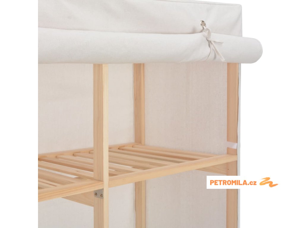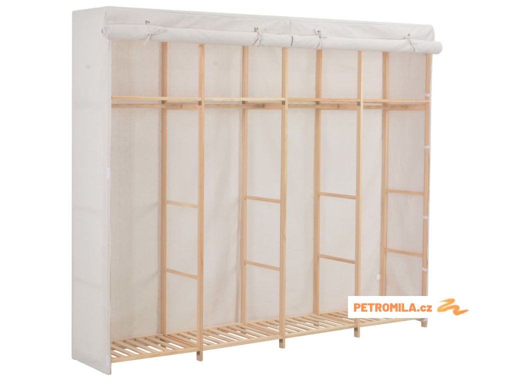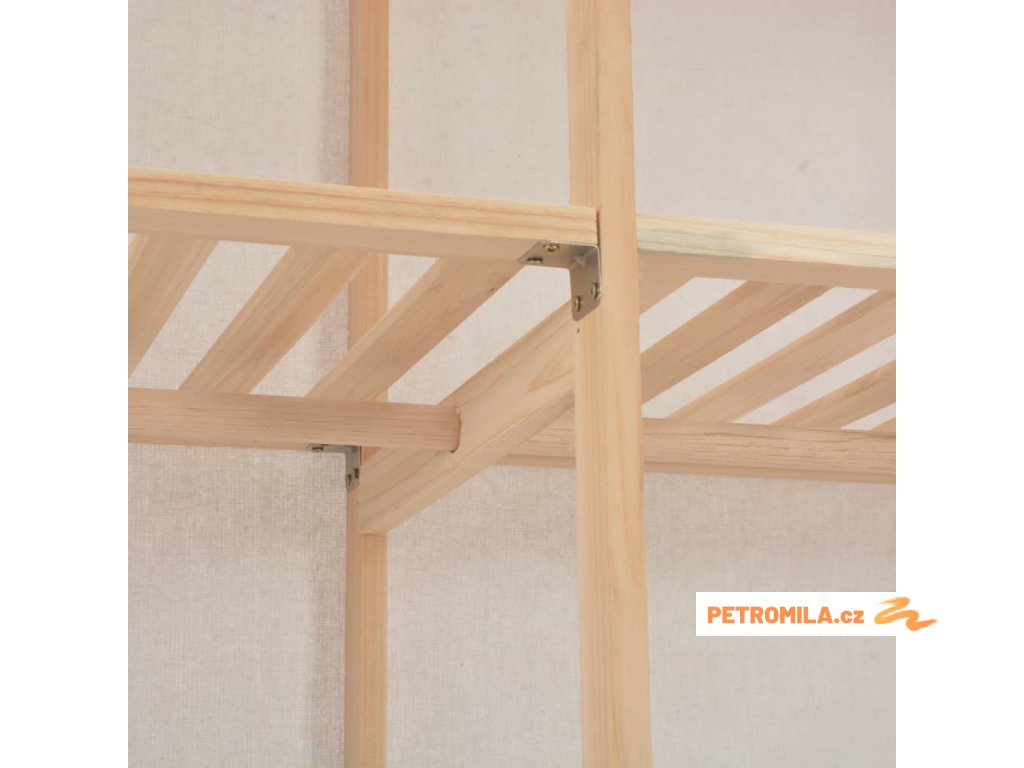 Organizér na oblečení má odolný dřevěný rám a celou řadu otevřených přihrádek. Látkový kryt skryje vaše oblečení před pohledy zvenku a zároveň je ochrání před prachem. Sestavení naší textilní šatní skříně je snadné.