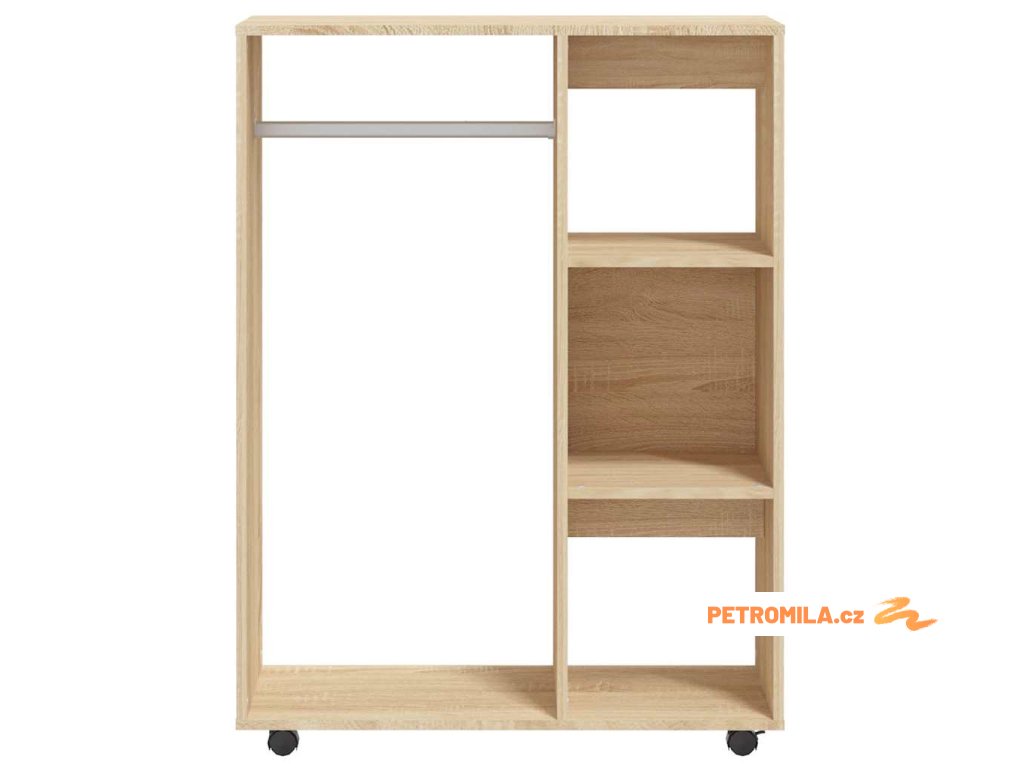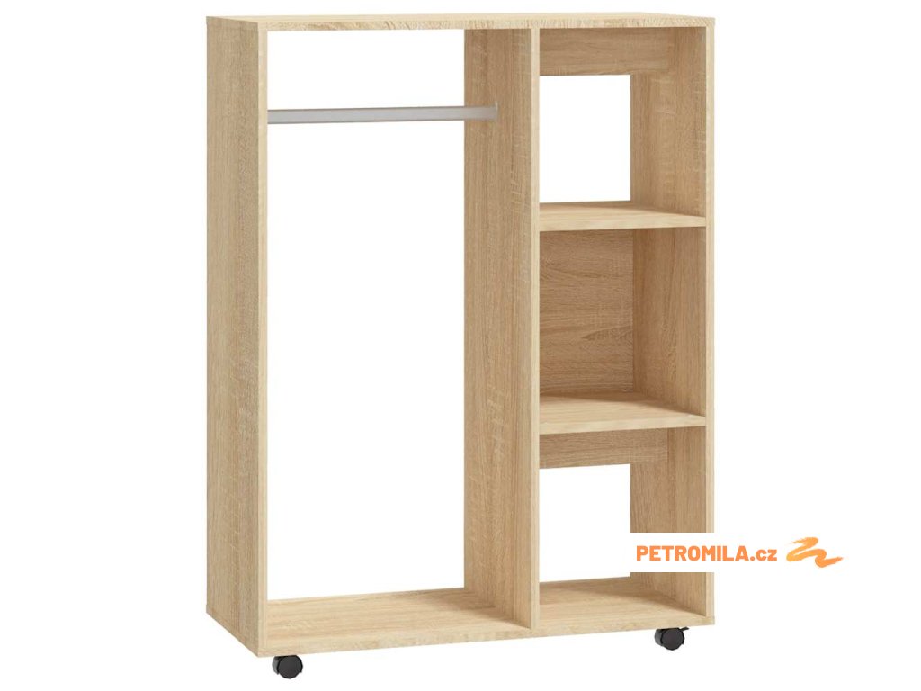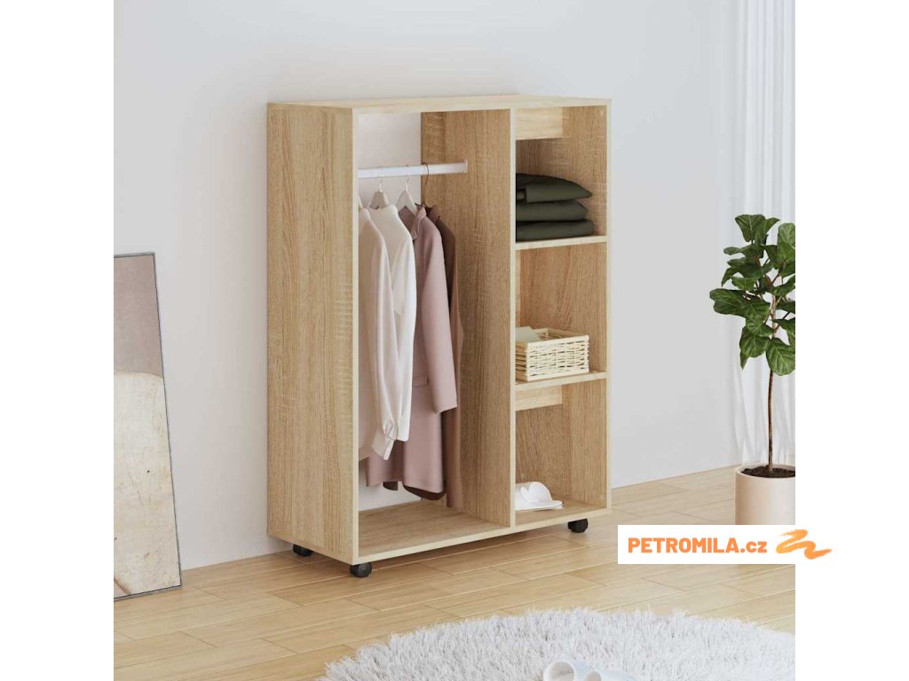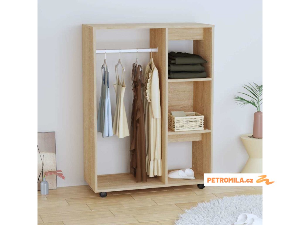 Tato úložná skříň je vyrobena z kompozitního dřeva, je proto odolná a robustní a skvěle vám poslouží pro uložení a organizaci vašeho oblečení. Pomocí koleček ve spodní straně skříně ji můžete snadno přemístit na požadované místo. Tento šatník má velkou otevřenou přihrádku a 3 boční police, kde budete mít vše potřebné hezky po ruce. Navíc se snadno čistí vlhkým hadříkem.