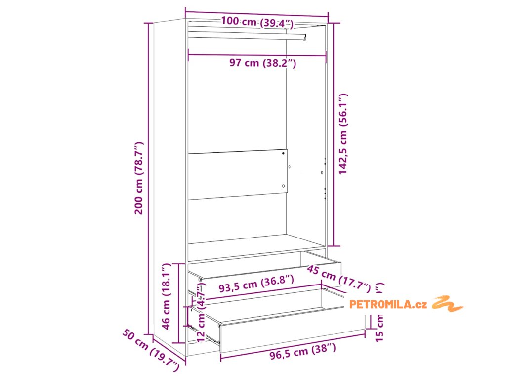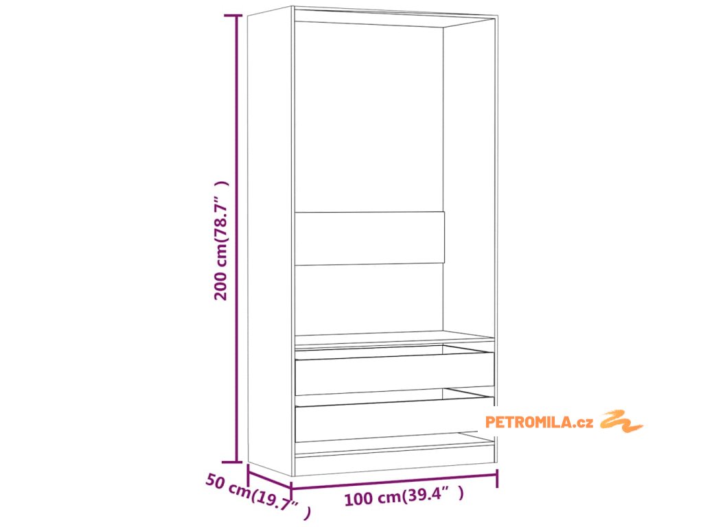 - Rozměry: 100 x 50 x 200 cm (Š x H x V)