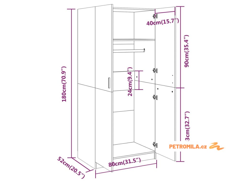 - Rozměry: 80 x 52 x 180 cm (Š x H x V)