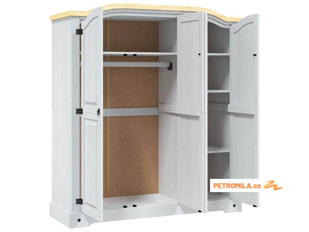 Šatní skříň mexická borovice Corona 3 dvířka bílá