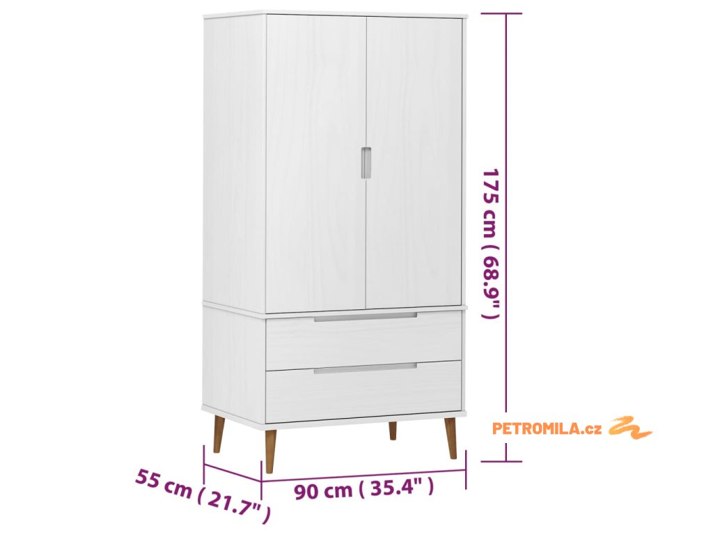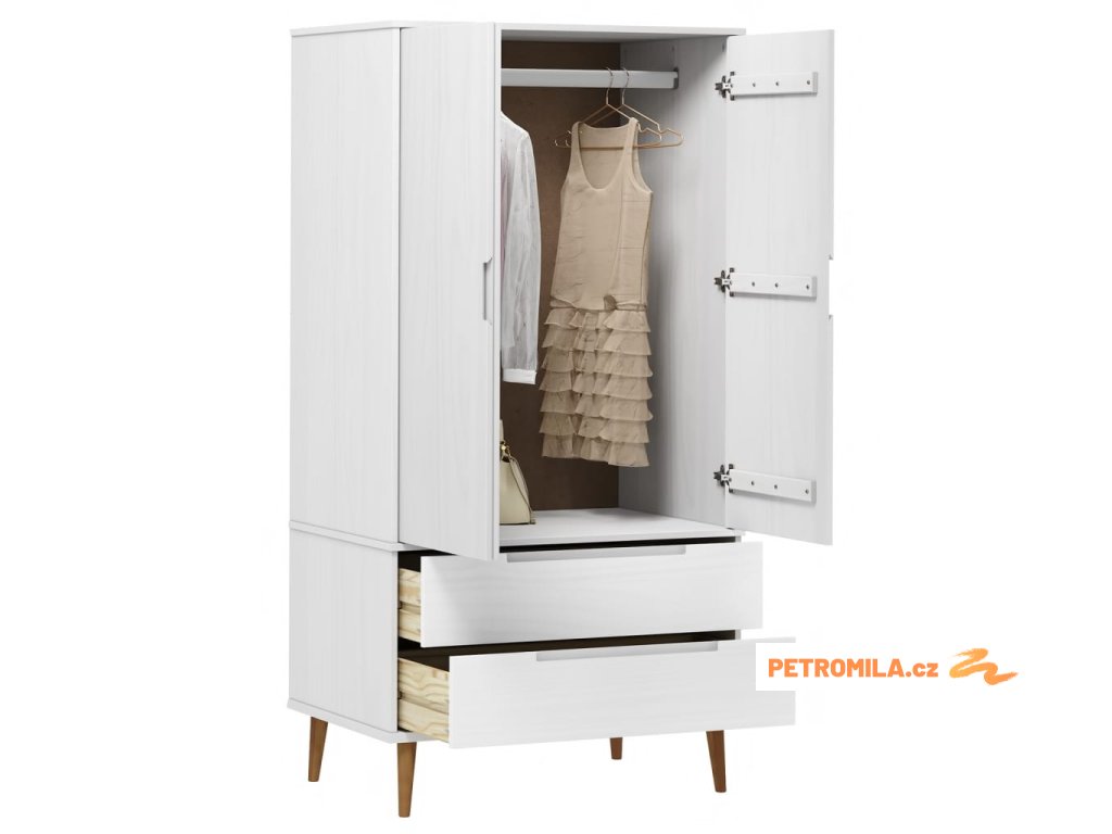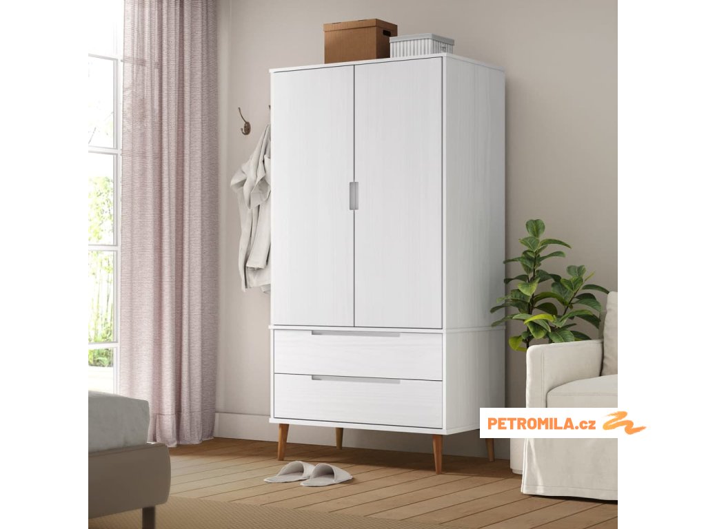 Šatní skříň MOLDE bílá 90 x 55 x 175 cm masivní borové dřevo