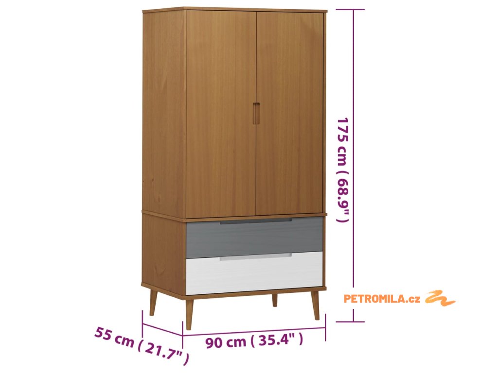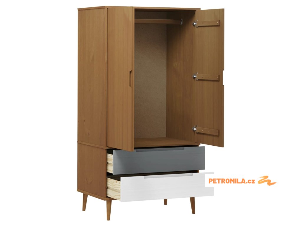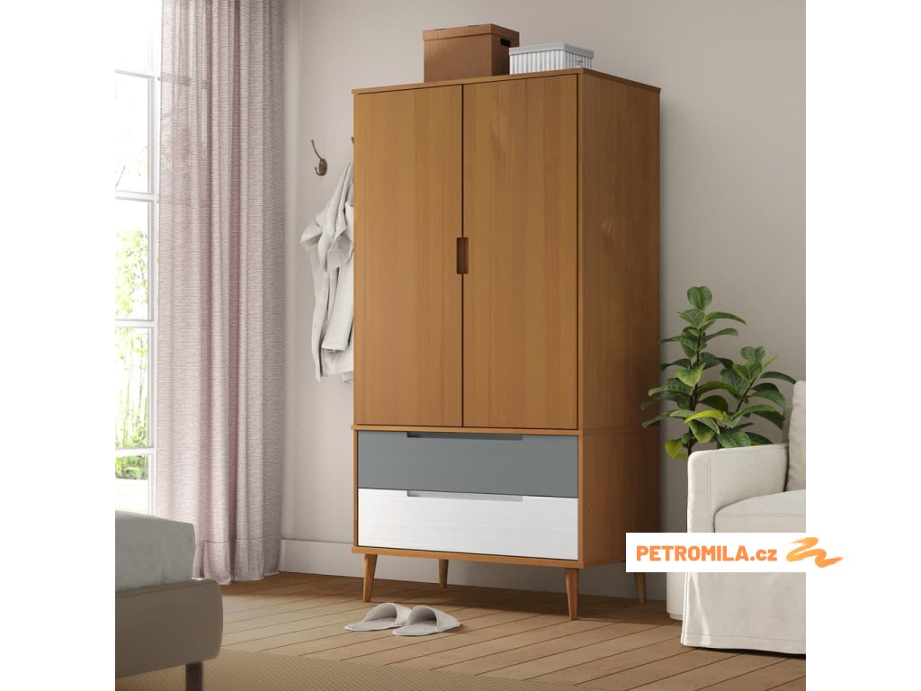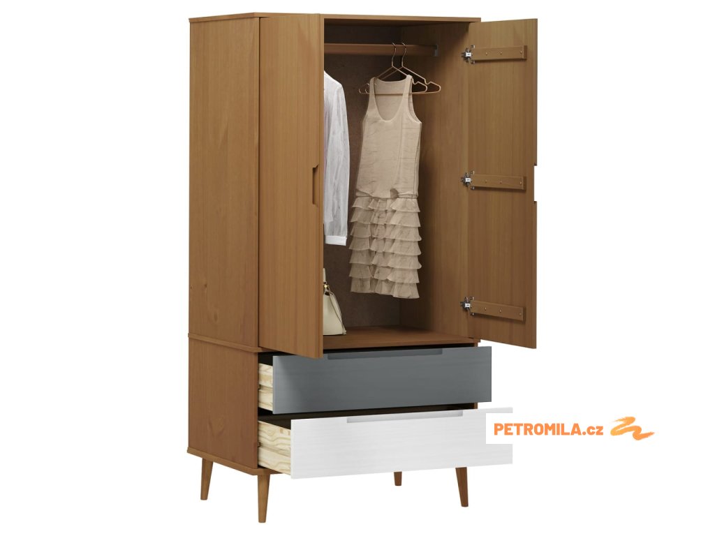 Šatní skříň MOLDE hnědá 90 x 55 x 175 cm masivní borové dřevo