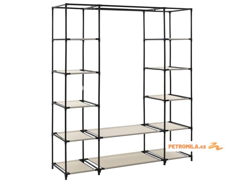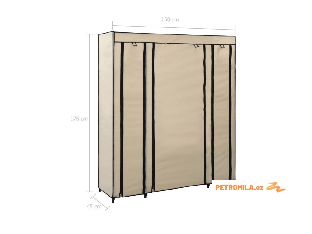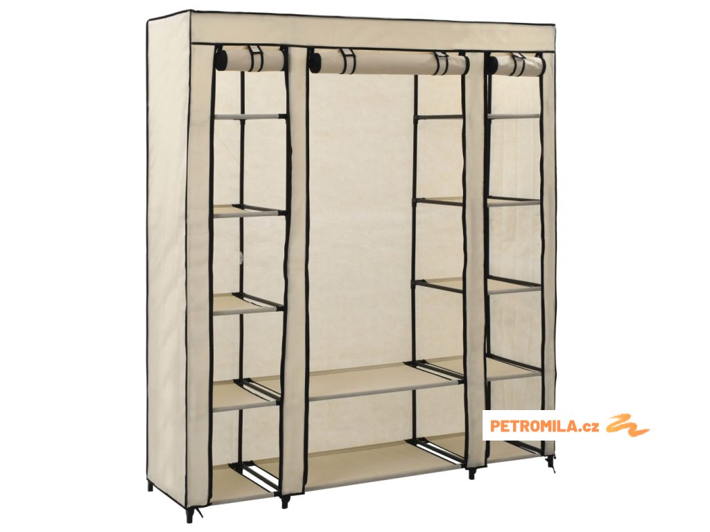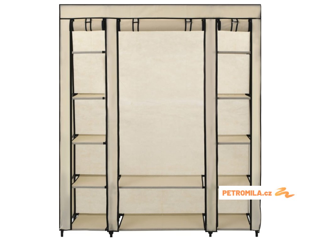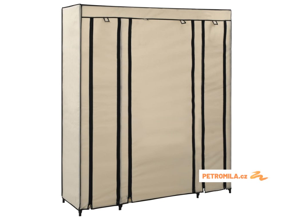 Šatní skříň s přihrádkami a tyčemi krémová 150x45x176 cm textil