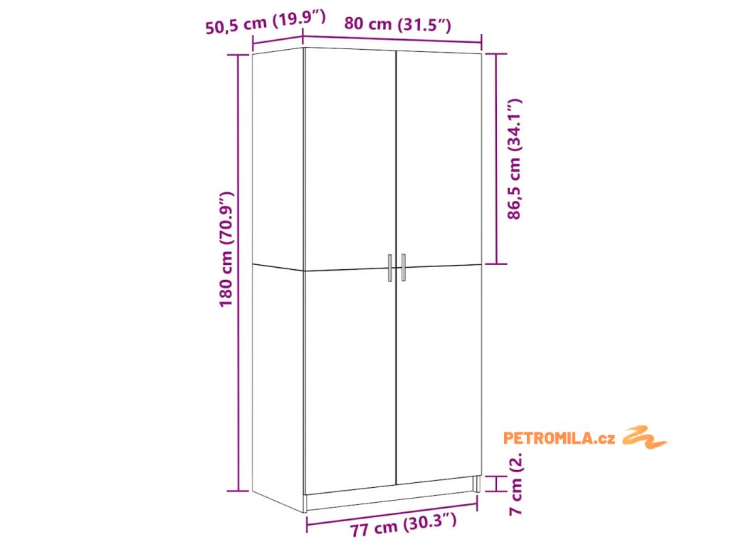 - Celkové rozměry: 80 x 51 x 180 cm (D x Š x V)