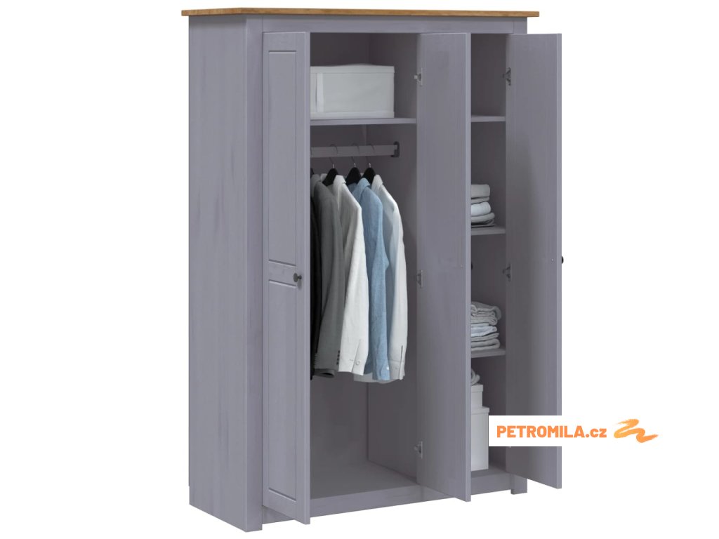 Šatní skříň se 3 dveřmi šedá 118x50x171,5 cm borovice Panama