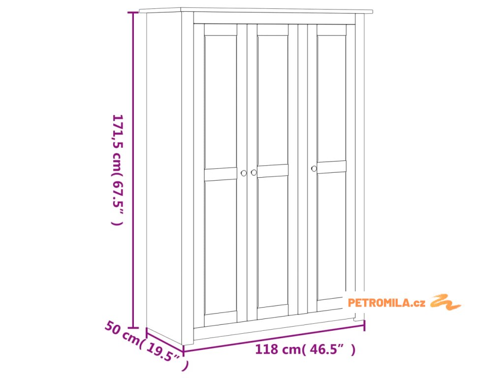 - Rozměry: 118 x 50 x 171,5 cm (Š x H x V)