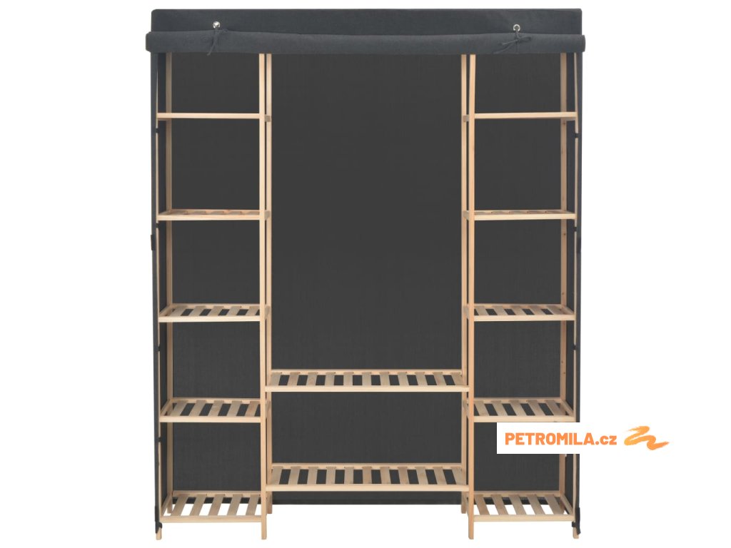 Organizér na oblečení má odolný dřevěný rám a celou řadu otevřených přihrádek. Látkový kryt skryje vaše oblečení před pohledy zvenku a zároveň je ochrání před prachem. Sestavení naší textilní šatní skříně je snadné.