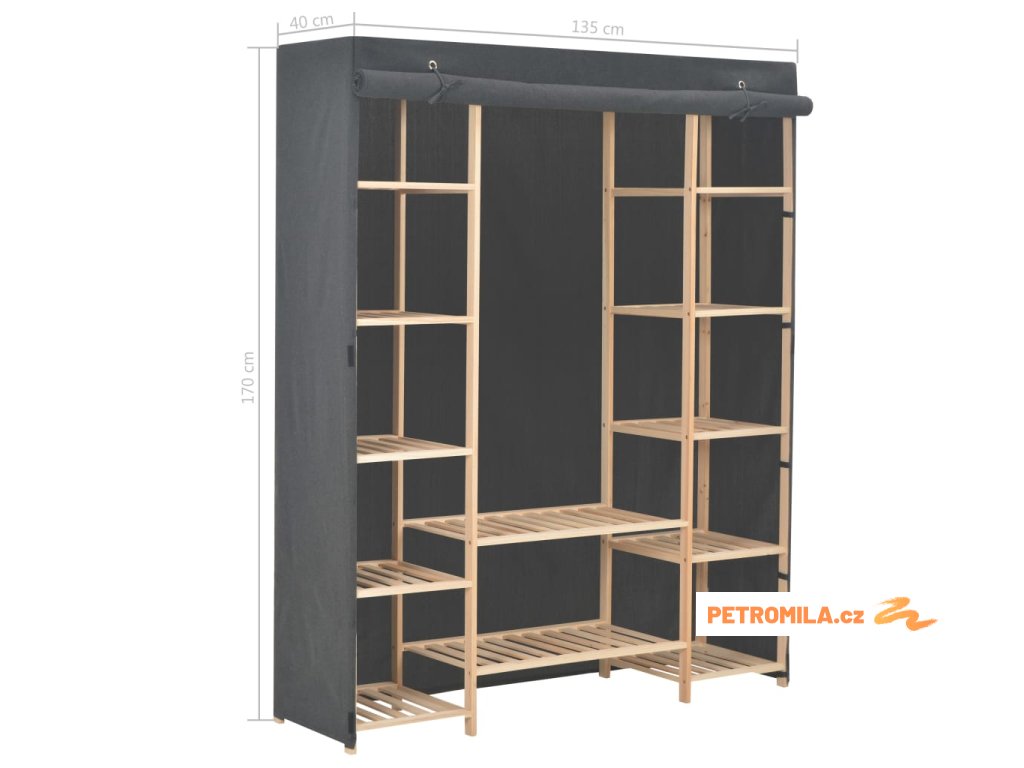 - Rozměry: 135 x 40 x 170 cm (Š x H x V)