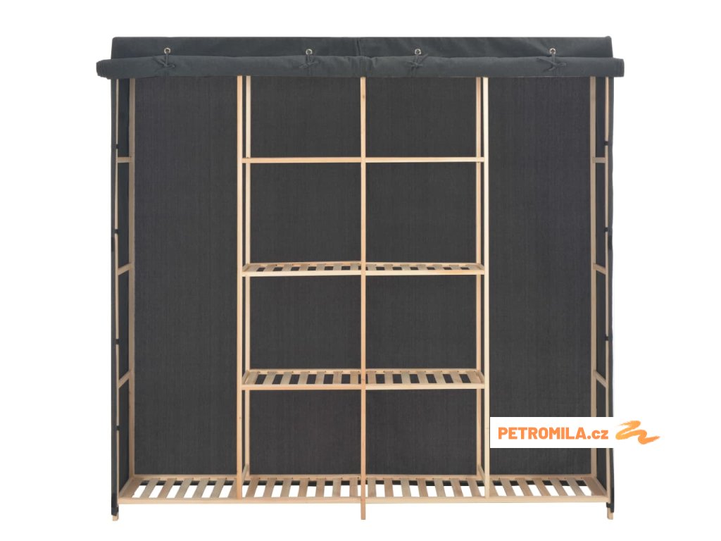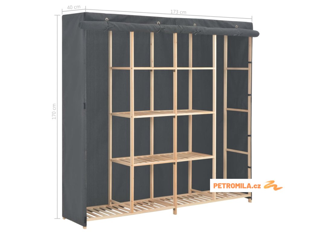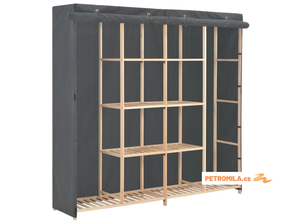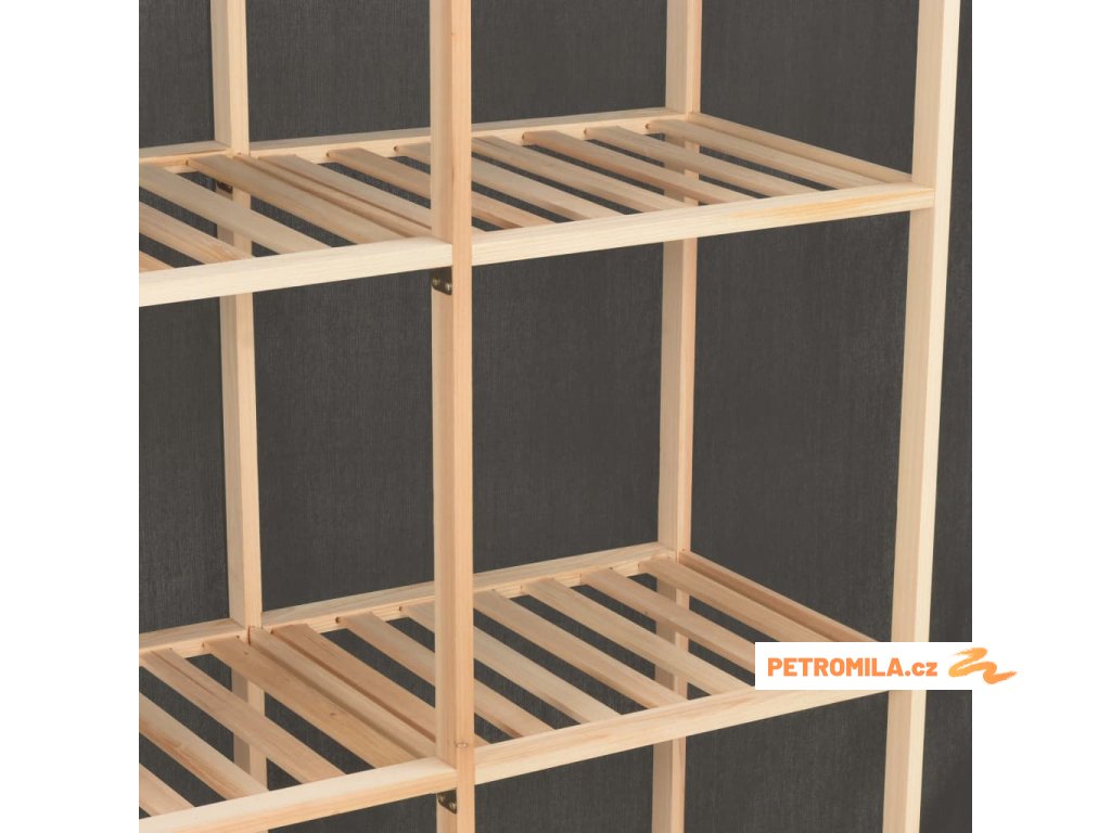Organizér na oblečení má odolný dřevěný rám a celou řadu otevřených přihrádek. Látkový kryt skryje vaše oblečení před pohledy zvenku a zároveň je ochrání před prachem. Sestavení naší textilní šatní skříně je snadné.