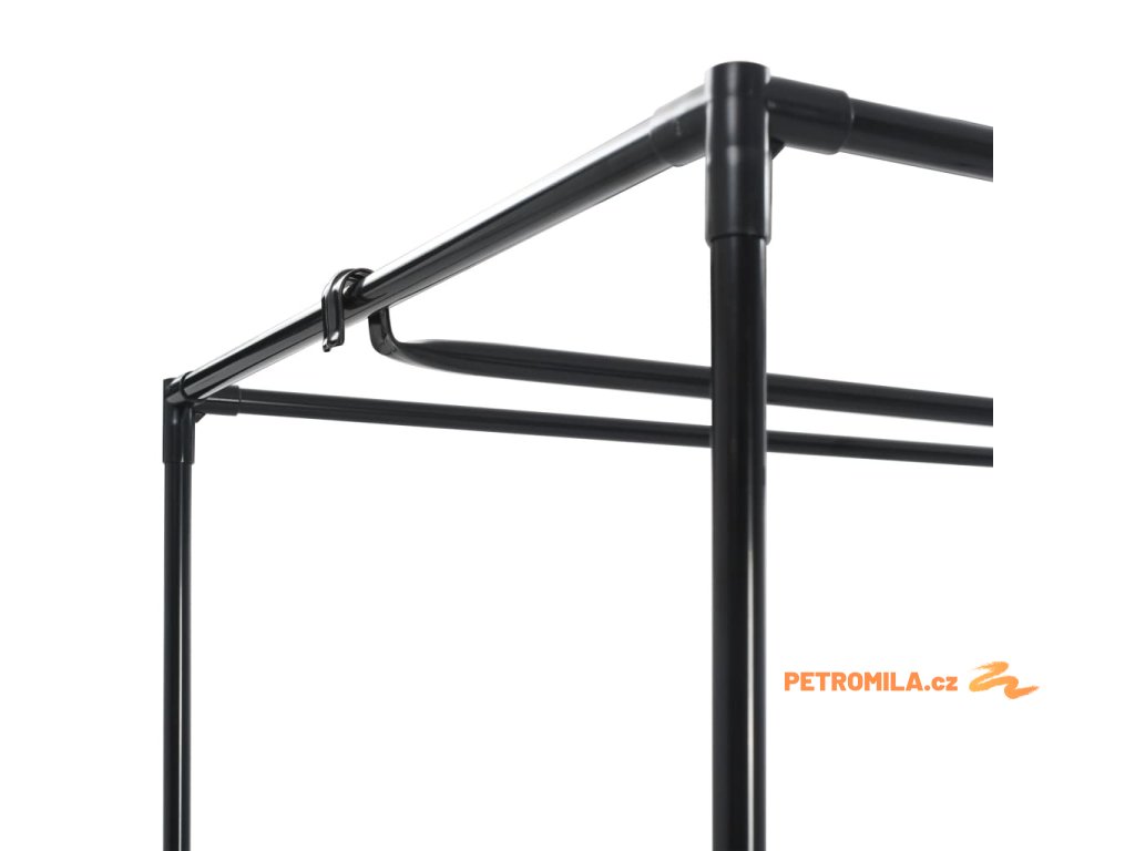 Skříň má ocelový rám a textilní potah se zipy, takže vaše oblečení spolehlivě ochrání před nečistotami a prachem.