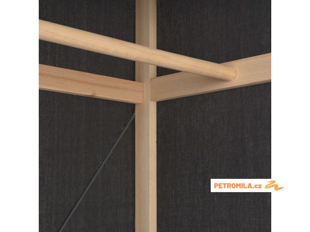 Organizér na oblečení má praktickou šatní tyč, na kterou si můžete zavěsit halenky, košile, kalhoty nebo bundy. Dřevěný rám zaručuje stabilitu. Látkový kryt skryje vaše oblečení před pohledy zvenku a zároveň je ochrání před prachem. Sestavení naší textilní šatní skříně je snadné.
