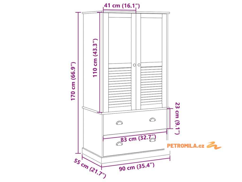 - Rozměry: 90 x 55 x 170 cm (Š x H x V)