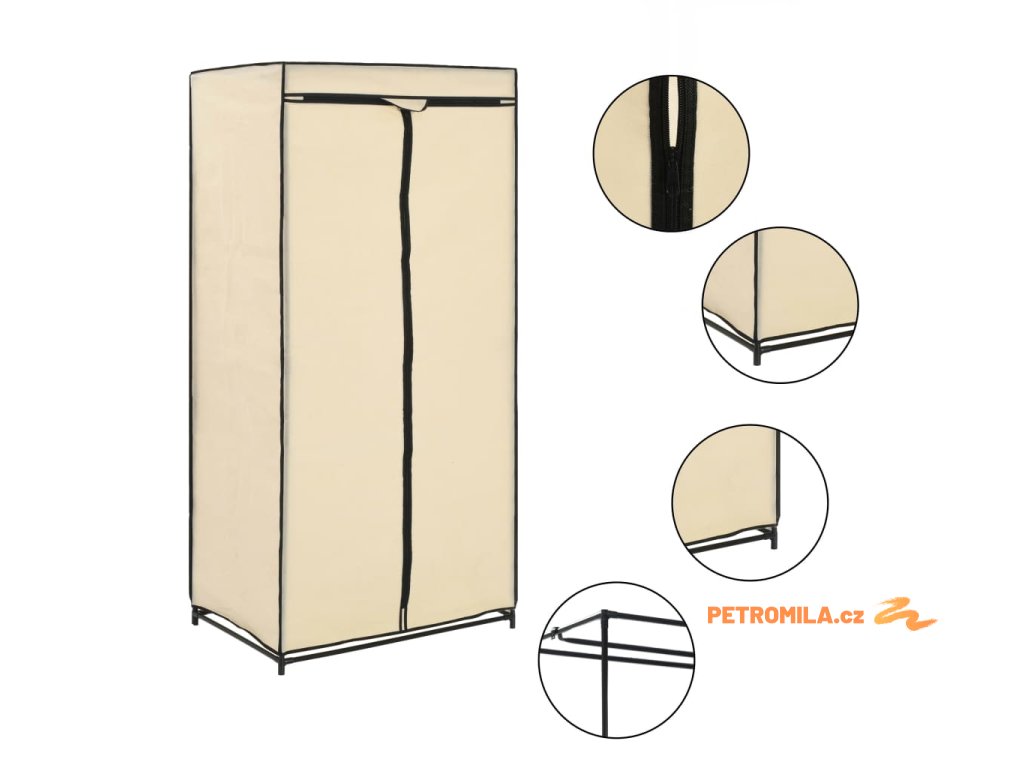 Skříň má ocelový rám a textilní potah se zipy, takže vaše oblečení spolehlivě ochrání před nečistotami a prachem.