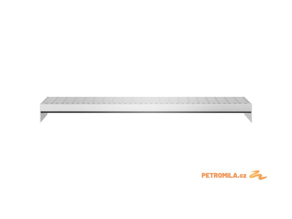 - Protiskluzová konstrukce: Tento schodišťový rošt má protiskluzový povrch a hrany, což snižuje riziko nehod, takže se jedná o bezpečnou volbu do rizikových prostor nebo všude tam, kde je bezpečnost na prvním místě.