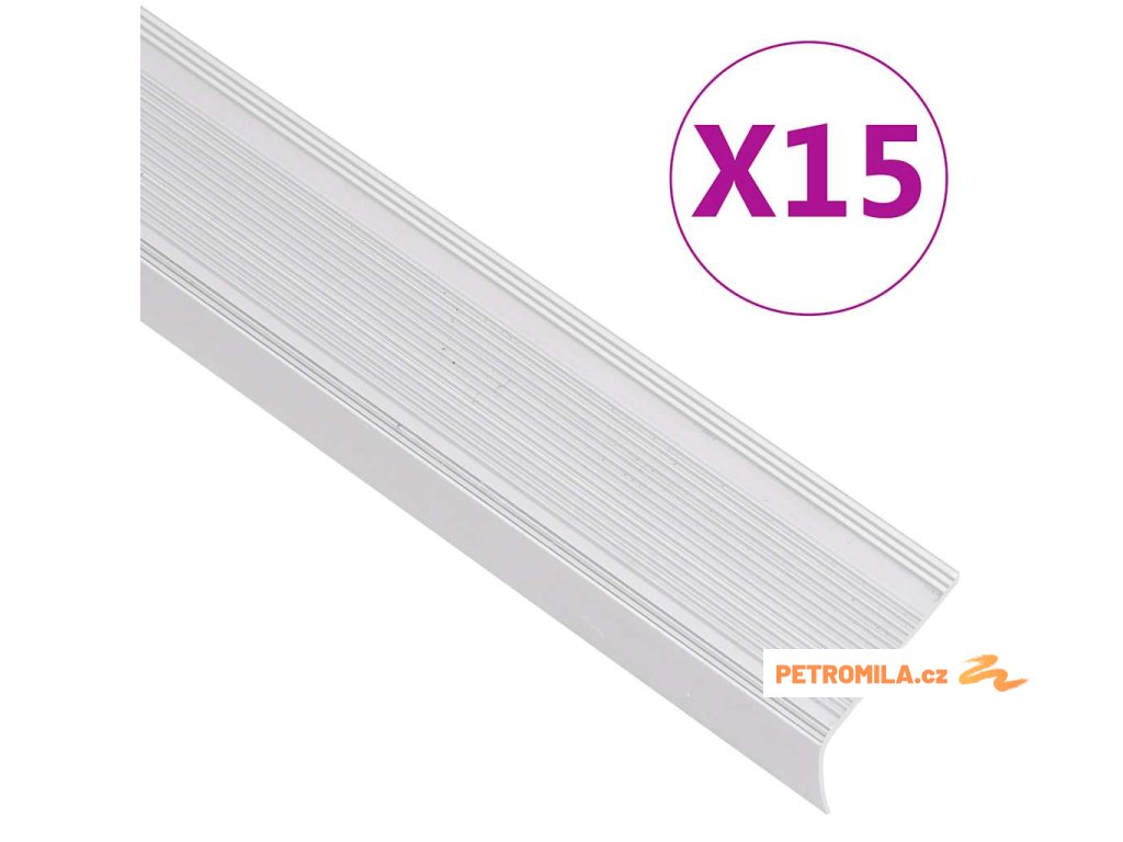 Schodové hrany ve tvaru L 15 ks hliník 100 cm stříbrné