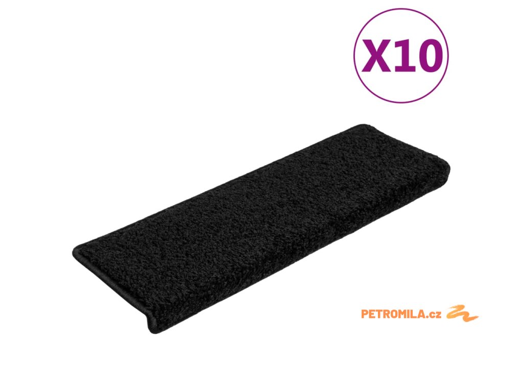 Schodové rohože 10 ks 65 x 21 x 4 cm černé s obdélníkovým okrajem