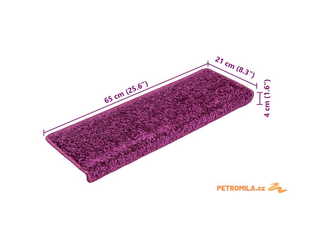 Schodové rohože 10 ks 65 x 21 x 4 cm fialové s obdélníkovým okrajem