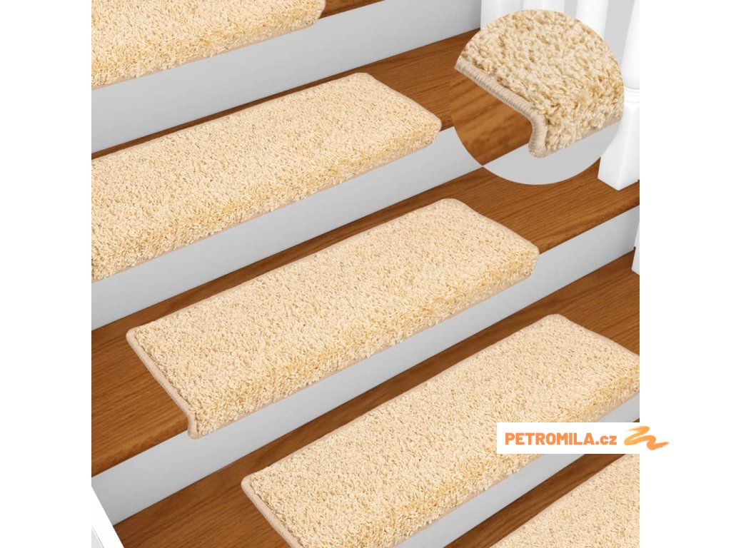 Schodové rohože 10 ks 65 x 21 x 4 cm krémové s obdélníkovým okrajem