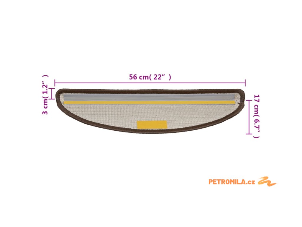 Schodové rohože 15 ks 56 x 17 x 3 cm hnědé půlkulaté