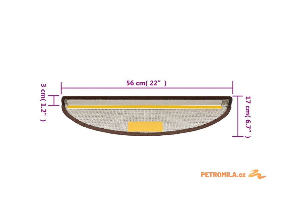 Schodové rohože 15 ks 56 x 17 x 3 cm kávově hnědé, půlkulaté
