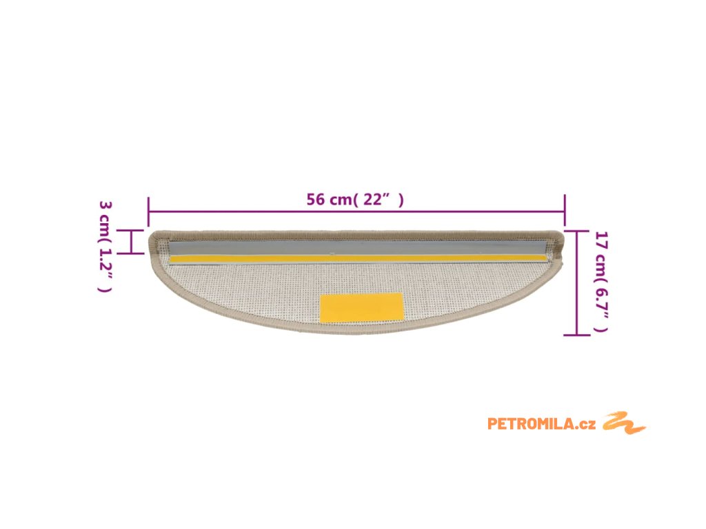 Schodové rohože 15 ks 56x17x3 cm béžové, půlkulaté