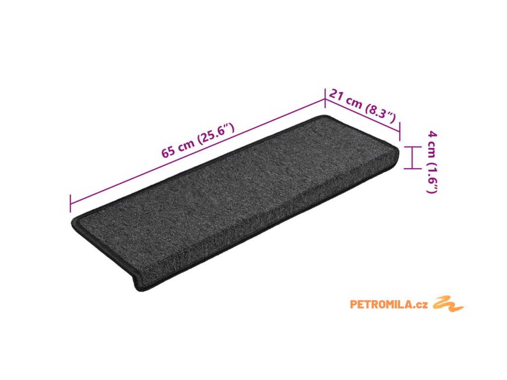 Schodové rohože 15 ks 65 x 21 x 4 cm antracitové s obdélníkovým okrajem
