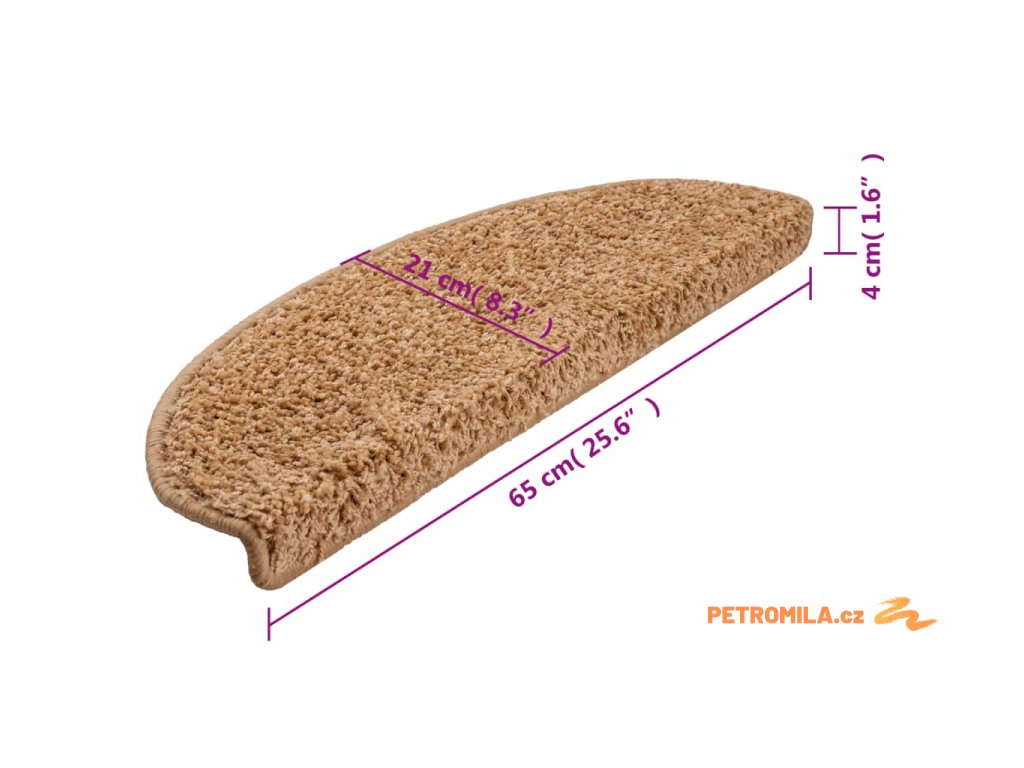 Schodové rohože 15 ks 65 x 21 x 4 cm béžové, půlkulaté, velké
